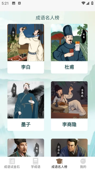 2、打开【成语名人榜】界面,选择喜欢的名人。