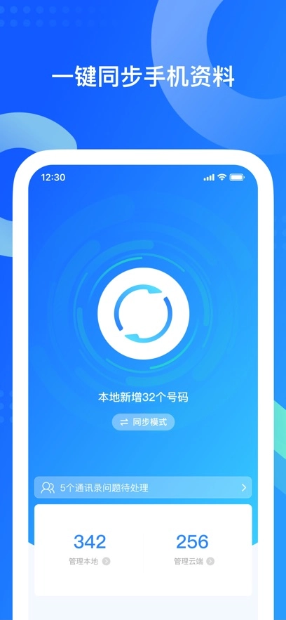 备份管理:手机通讯录一键备份至网络,随时同步回手机