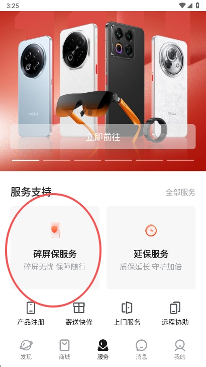 1、在服务板块,您能够看到碎屏保服务,点击即可进入。