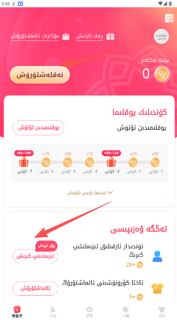 2、获得方式通常可以从设置功能界面找到,点击上方的赚金币。