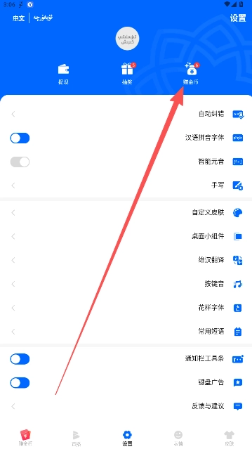 1、Badam维语输入法的金币,是用来兑换软件内各项权益时需要用到的物品。