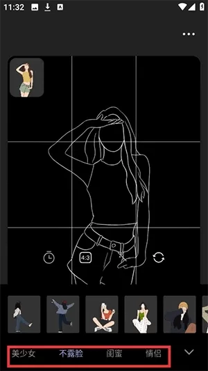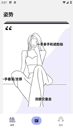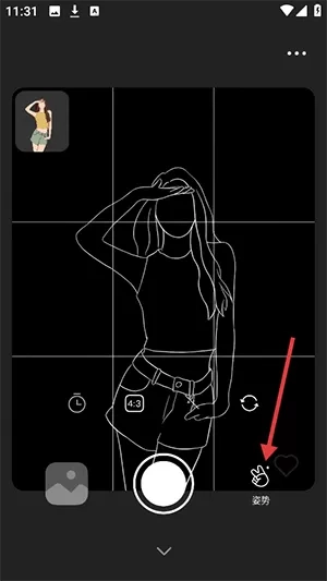 2、点击拍摄界面右侧的【姿势】按钮,可查看更多姿势参考。