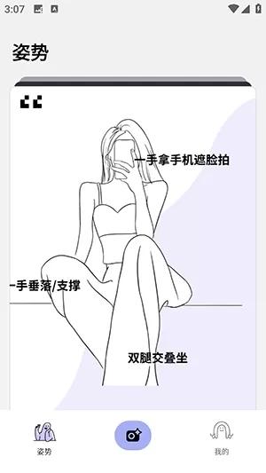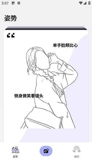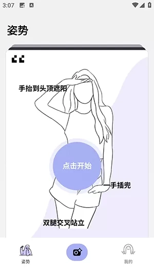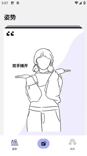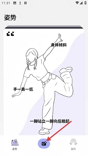 1. 在姿势页面,轻点底部的相机图标,即可进入拍摄界面。