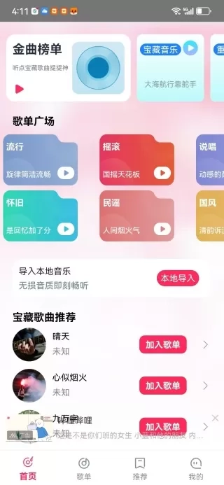 2、在首页用户可以点击加入歌单,系统将会让你快速进入歌单中心。
