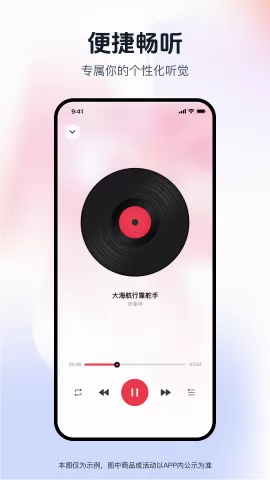 1、提供音乐播放功能,支持本地导入音乐,能以无损音质播放,带来优质听觉体验。