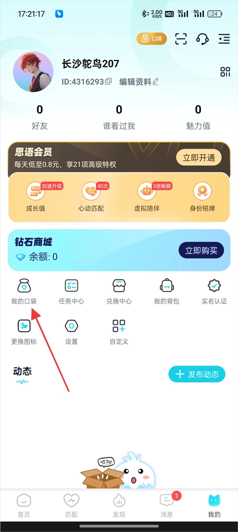 1. 开启思语App,于首页轻点右下角的“我的”。