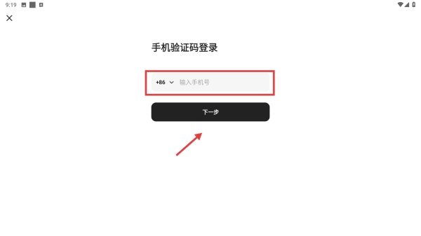 4、输入手机号,点击下一步按钮,完成验证码输入后即可完成账号登录。