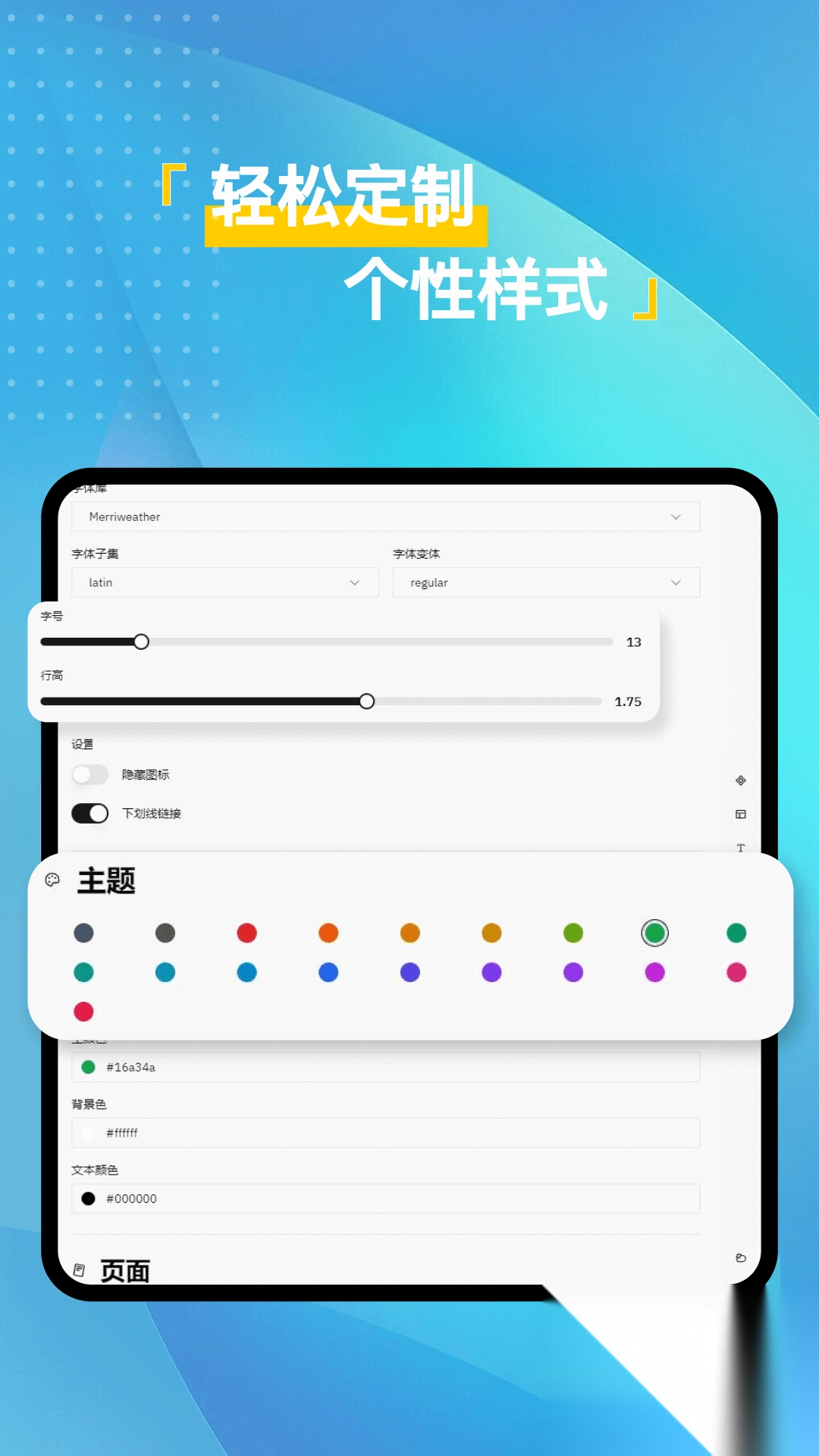 2、除挑选特色简历模板外,你还能自行定制简历模板。在此过程中,可轻松选定主题颜色、字体大小、行高距离以及页面造型等,打造出独一无二的特色模板!
