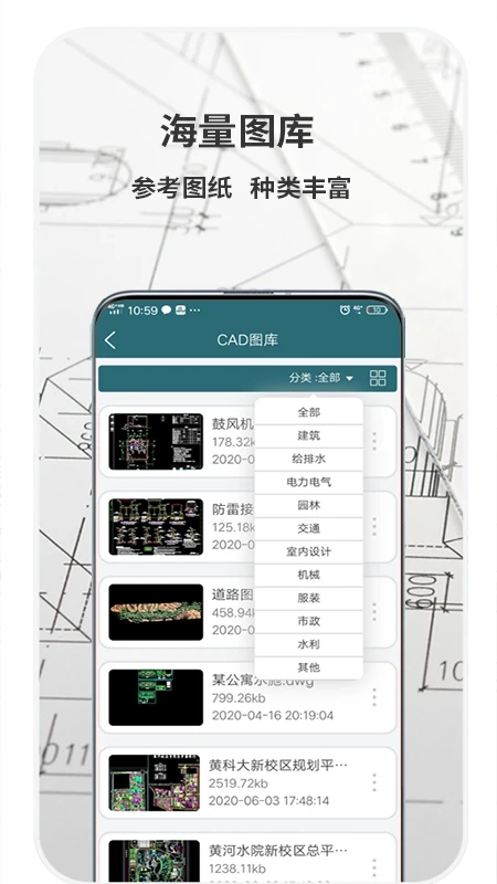1、兼容所有版本的AutoCAD图纸,以及所有天正图纸,全面准确展示CAD图纸,并有大量图库可供参考。