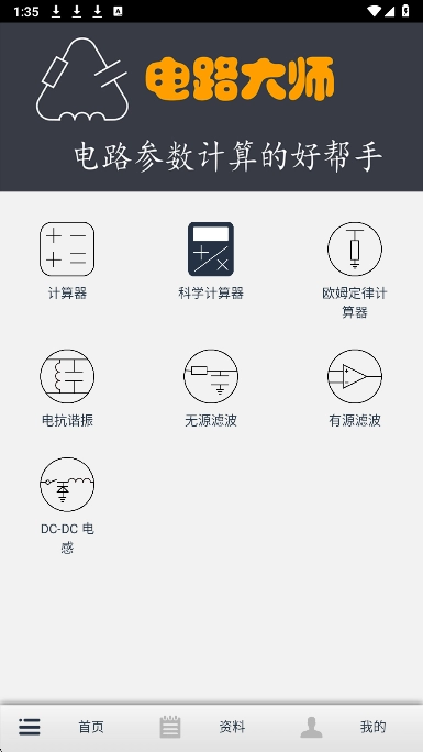 电路大师是一款专门面向电子电路设计开发人员打造的电路参数计算软件。这款软件中的计算器能够免费协助电工进行计算,助力电工精准算出各类电压、电阻以及电流数据。就算是电工日常使用,操作起来也极为便捷,毫无难度。此外,电路大师集成了欧姆定律计算器、电抗谐振计算器、无源滤波器(RC/LC)计算器、有源滤波器参数计算器、DC - DC电感计算器等,能够满足不同场景下对于电路参数计算的需求。