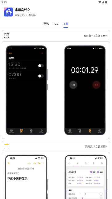 《主题盒PRO仿IOS主题》汇聚海量精美的美化主题资源。无论是小米、华为、vivo,还是oppo等主流机型的用户,都能从中挑选适配到自己手机端的主题。这些主题均以一比一的比例真实还原苹果ios系列的主题风格,你可以在这里随心挑选心仪样式进行调整,打造出独一无二、个性十足的手机主题。