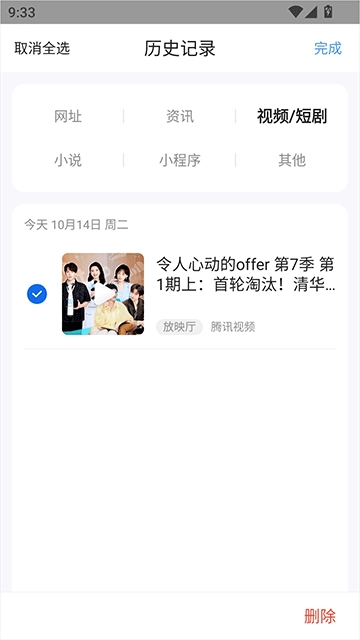 2、接着长按想要删除的浏览记录,点击最右下角的“删除”即可