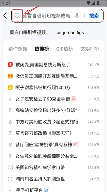 5、亦或在首页点击搜索框,随后点击搜索框里由红框选定的搜索图标。