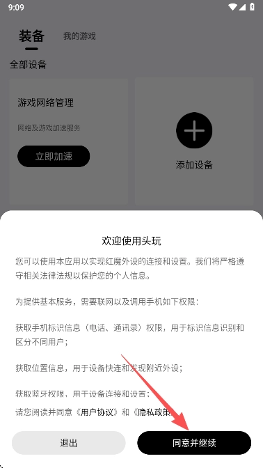 1、在本站进行头玩安装并打开,同意头玩的用户协议。