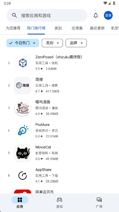 2、您可以点击热门排行榜,查找当前热门应用