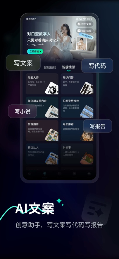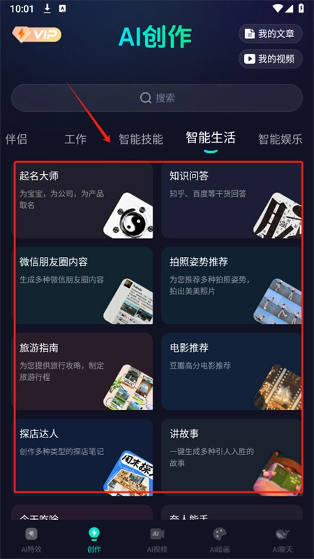 在创作页面,能够运用知识问答、小说推文视频等功能。