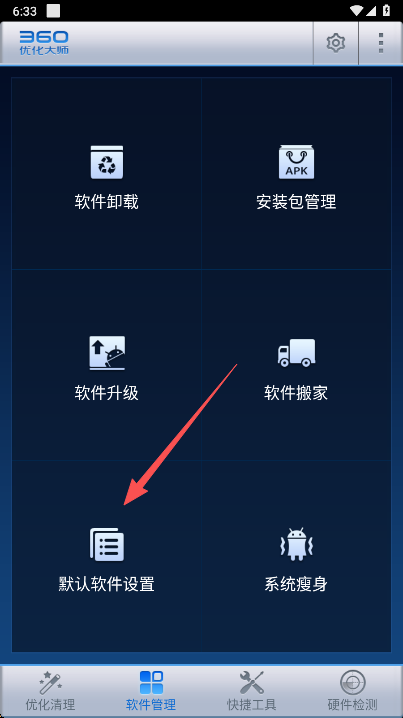 1、用户能够直接进入软件管理页面,在此页面能够看到默认软件设置。
