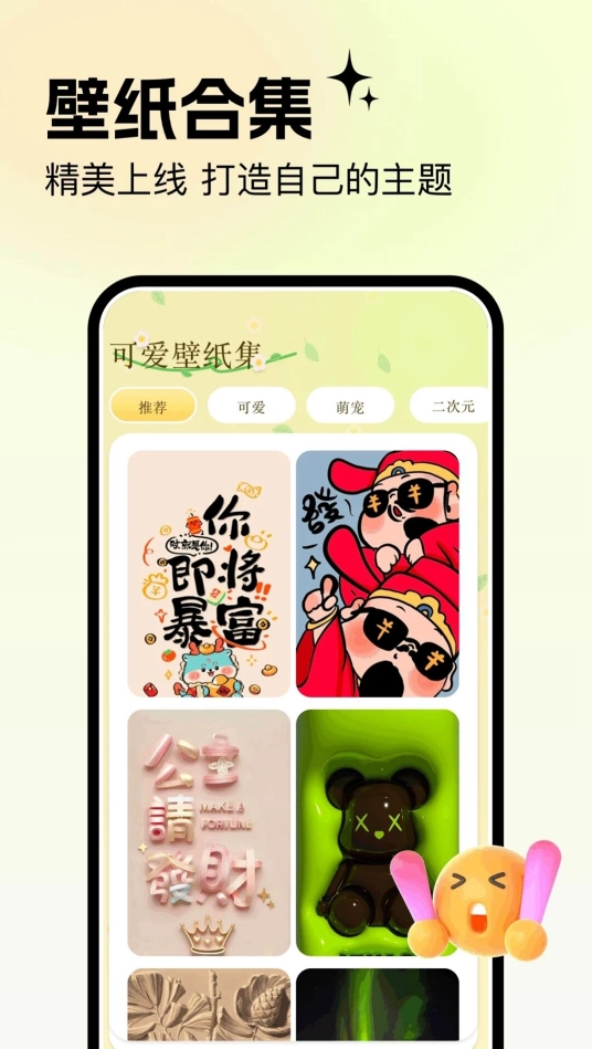 1、您能够依据当下的心情,像“平静”“开心”“元气”“治愈”这类标签,迅速寻觅到最具共鸣的壁纸。