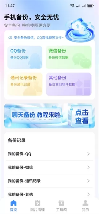 2、支持 QQ 备份、微信备份、通讯录备份以及其他备份,全方位满足多样化的备份需求。