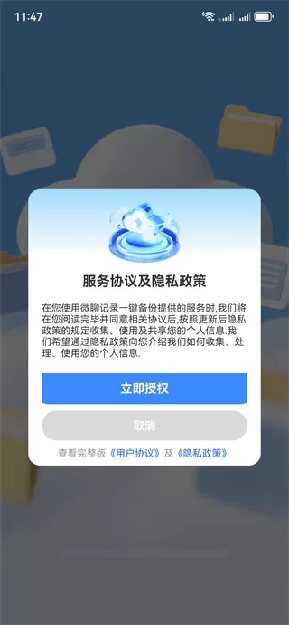 1、阅读服务协议及隐私政策之后点击立即授权即可进入;