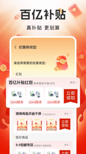 3、踏入领券专区,众多精选好物供你挑选,这是一款一站式购物软件。
