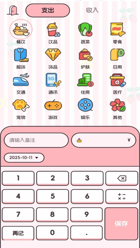 2. 轻点加号,即可开启记账服务,这里提供支出、收入等多种不同记账模型,账目添加轻松便捷。