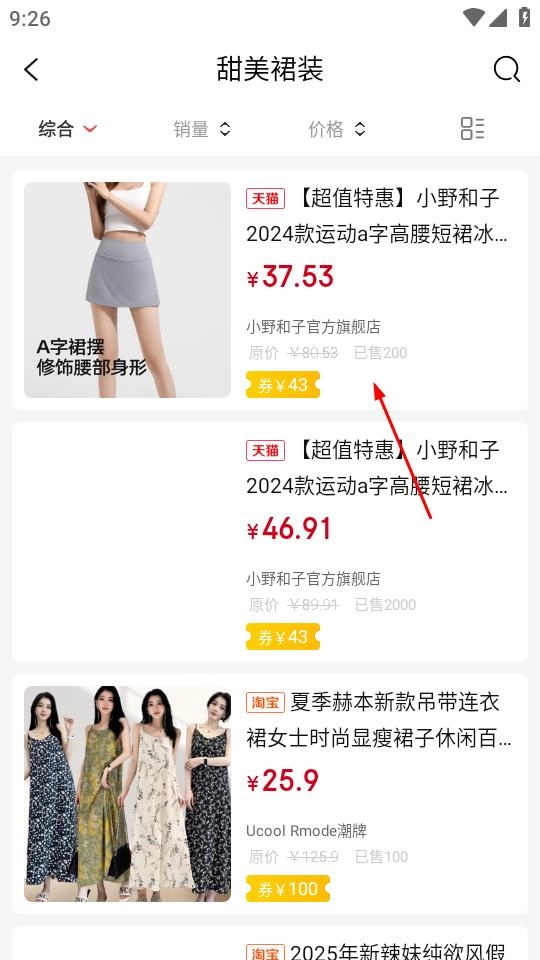 3、在甜美裙装商品列表中,选择心仪的商品并点击进入详情页。