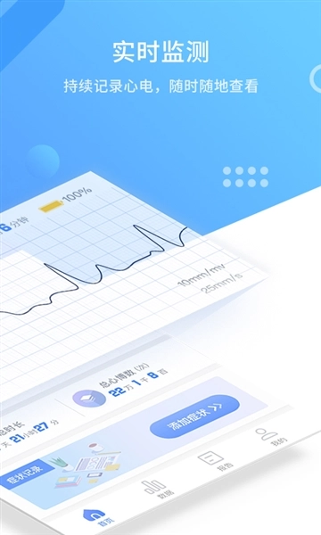 5、实时监测心电数据,持续记录和展示心电图,随时随地的便捷查看;