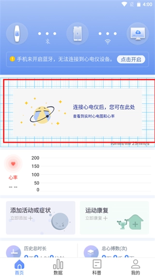 1、佩戴好仪器,连接好仪器之后,可以在下图红框处查看到实时的心电图和心率