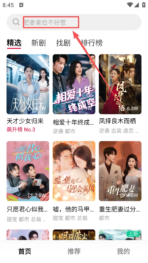 1. 来到首页,点击顶部的搜索框。