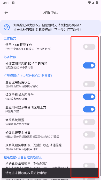 1、当我们打开之后,若要使用其中的功能,建议大家尽可能开启所有权限。