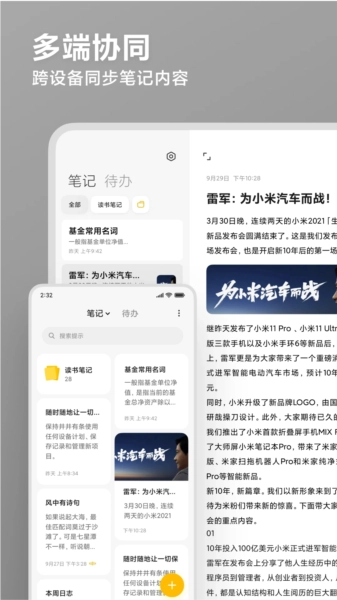 7、更可与小米笔记的手表端无缝配合,完美适配云笔记应用,随时便捷记事。