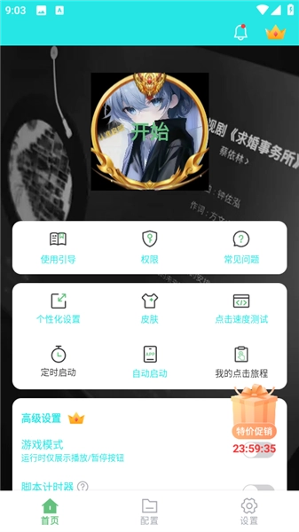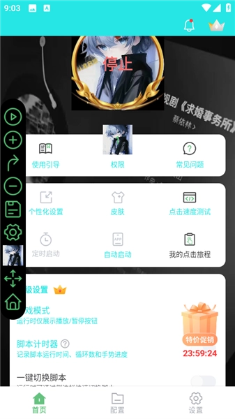 1、支持自动启动绑定目标应用、定时启动、脚本计时器与一键切换脚本。