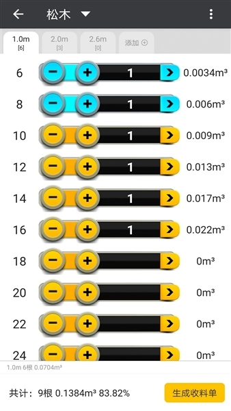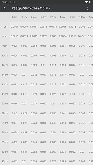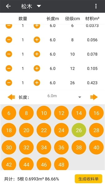 3、拥有丰富且准确的材积表,能使用户知晓各类尺寸的木材原木情况。