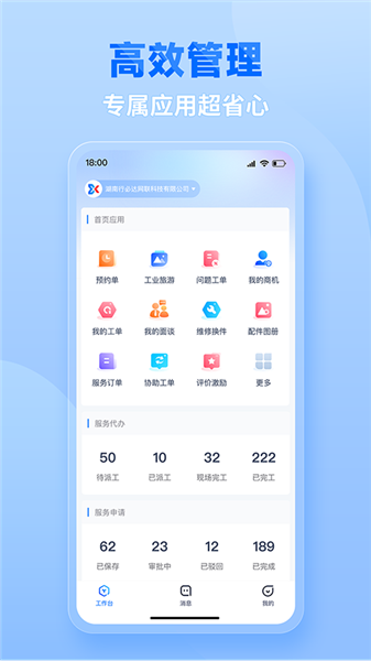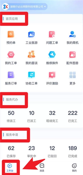 2. 在工作台界面,商家可迅速处理服务订单、服务申请及工单等业务,高效完成日常操作。