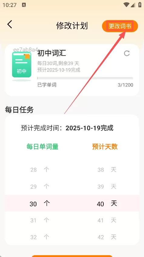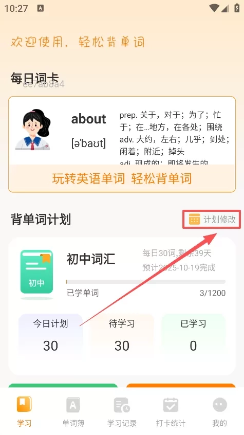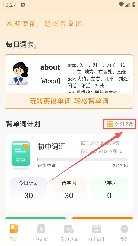 1. 开启软件,进入学习板块,点击“计划修改”。