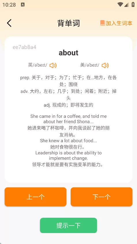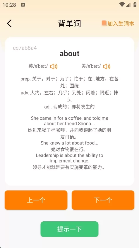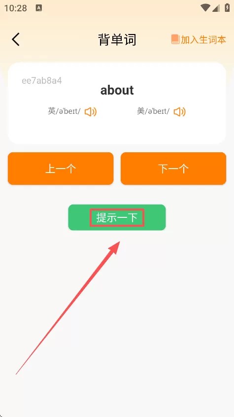 3、要是遇到不懂的单词,点击“提示一下”就能获取详细信息。