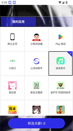 3、选择应用后,点击下方的斩连点器1.0即可。