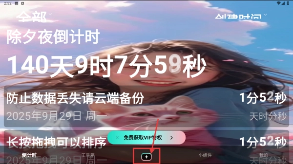1、打开倒计时类应用,点击底部+按钮,进入添加界面。