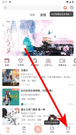2、进入首页后,点击底部我的。