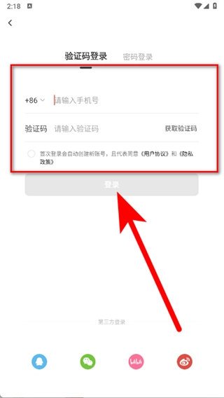 4、选择验证码登录,输入手机号,输入收到的验证码,勾选后,点击登录完成操作。