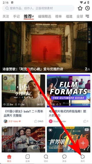 1. 开启新片场视频素材,点击底部的“我的”。
