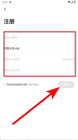4、依次输入昵称、手机号,获取验证码并填入,勾选相关选项后,点击“注册”即可完成操作。