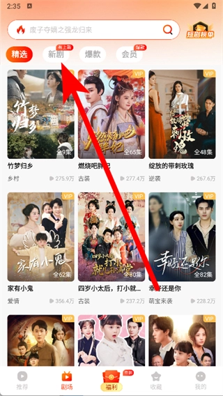 1. 想要观看短剧,可在打开后的首页点击新剧分类。