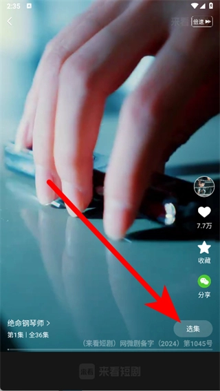 4、在选集页面,点击添加收藏,方便后续快速找到该短剧继续观看。
