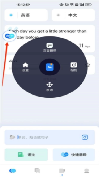 2. 文本翻译功能:可实现短语与单词的实时翻译。