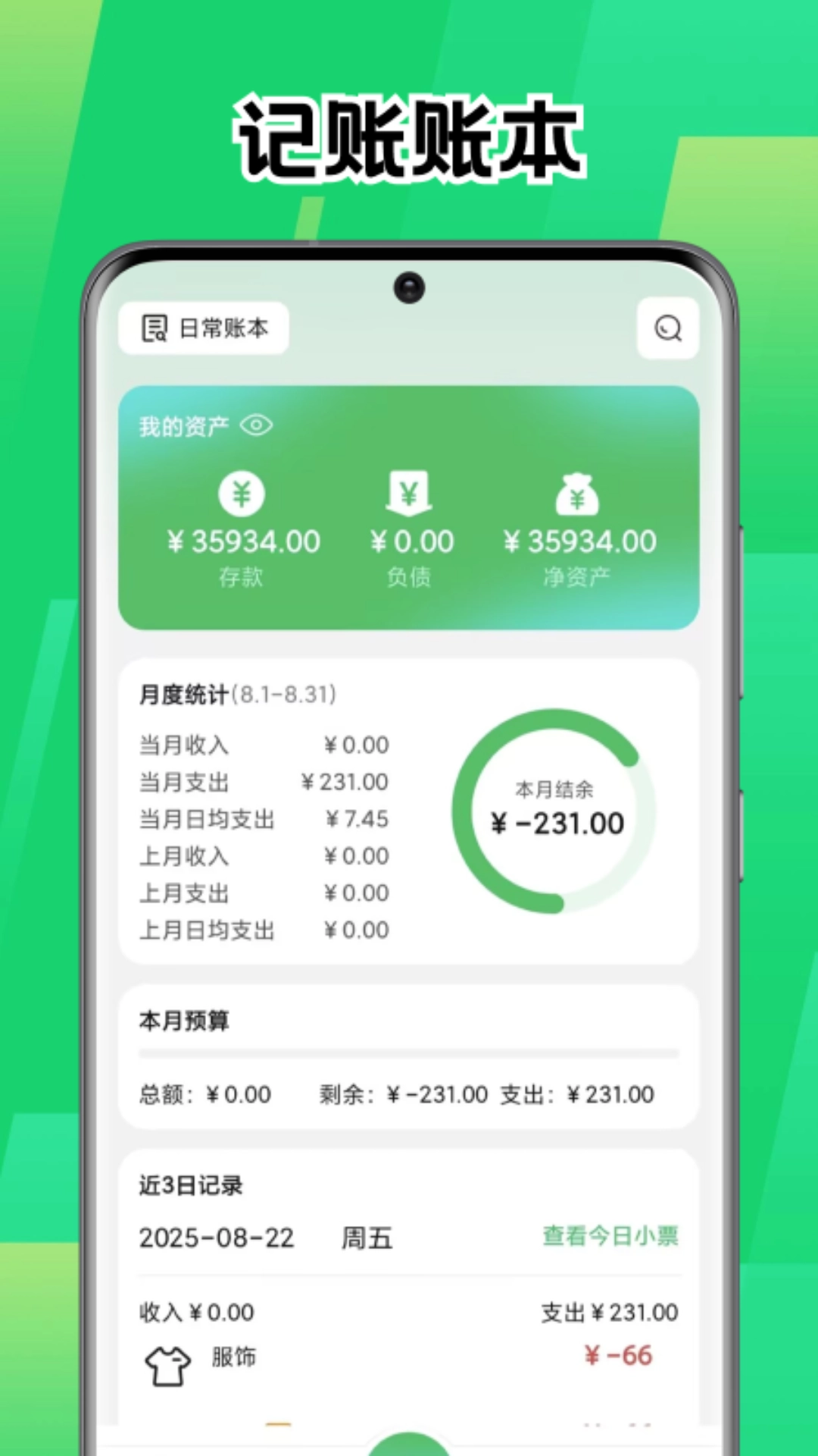 2、记账、查看统计与图表等操作流程简单,用户能快速上手使用。