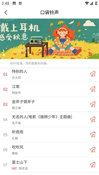1. 资源正版且丰富:平台上所有铃声皆为正版资源,从根源上杜绝侵权风险。同时,拥有海量曲库,涵盖各种风格,无论是热门流行歌曲,还是小众独特的音乐,都能在此找到适配的铃声。