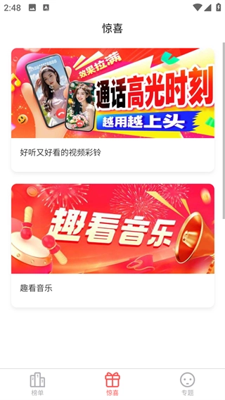 3、多样化铃声专题:我们用心打造了多样化铃声专题,涵盖节日主题、影视原声等丰富类型。搭配高清音质,旨在为用户带来沉浸感更强、更具场景感的铃声体验。