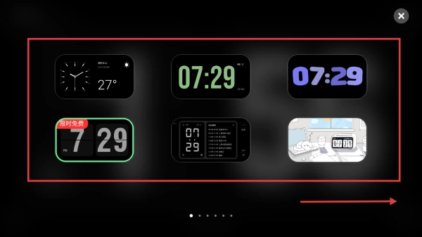 1、打开时钟类应用,点击轻扫/点击换表盘区域,进入表盘选择界面。